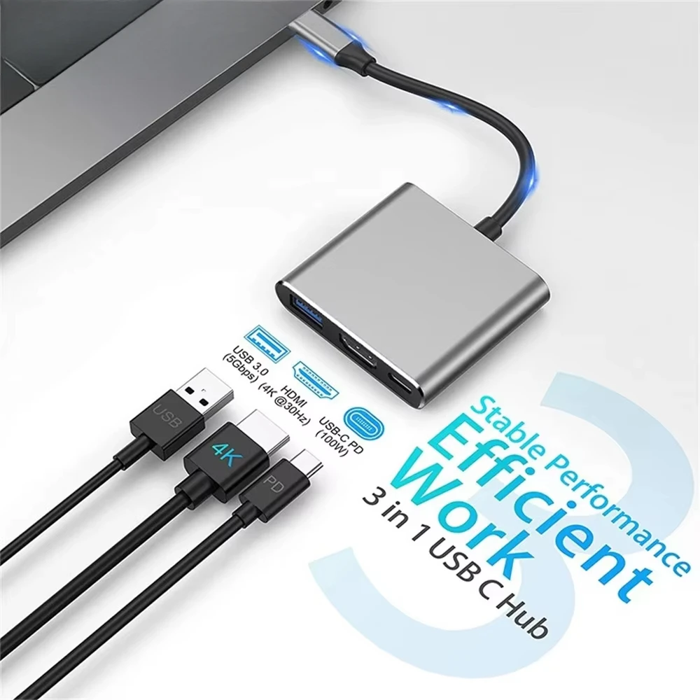 3 in 1 Usb-C Usb Hub Male To Female Hdmi-Compatible 4K Usb 3.1 Type-C To Usb 3.0 Charging Adapter for Macbook Air 12 Converter