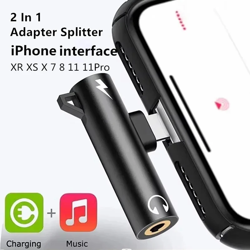 NEW 2 IN 1 Audio Headphone Charging Dual Adapter Splitter For iPhone XR XS X 7 8 11 11Pro For 3.5mm Jack to Earphone AUX Cable