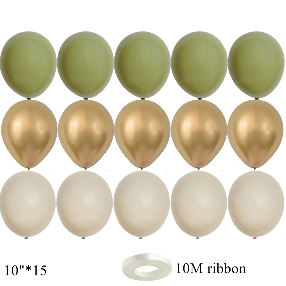 15/20PCS 10inch Vintage Balloons Retro Khaki Green Balloon Set for Wedding Anniversary Happy Birthday Party Decoration Supplies