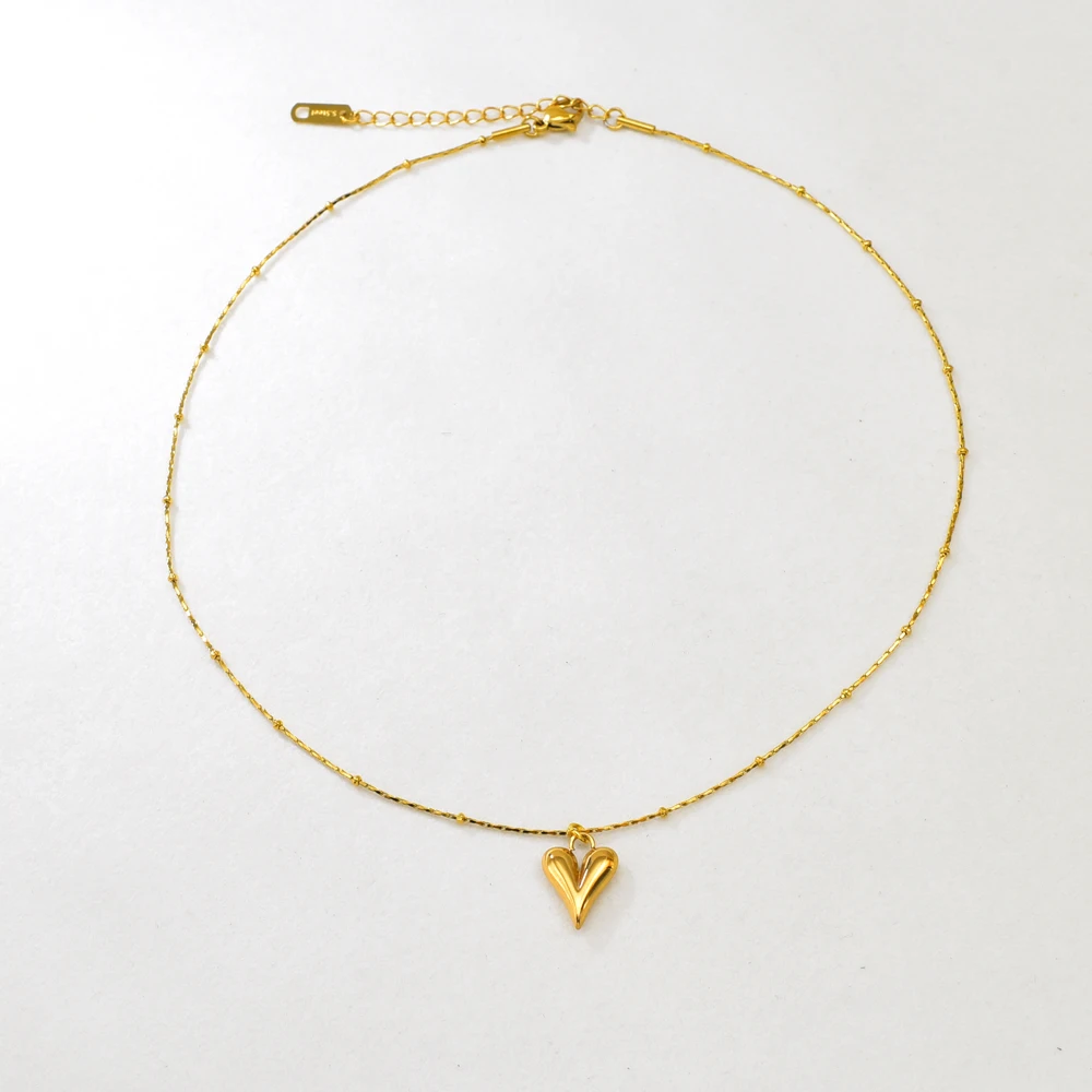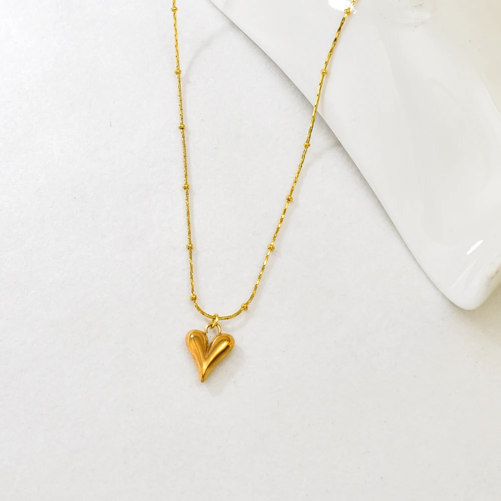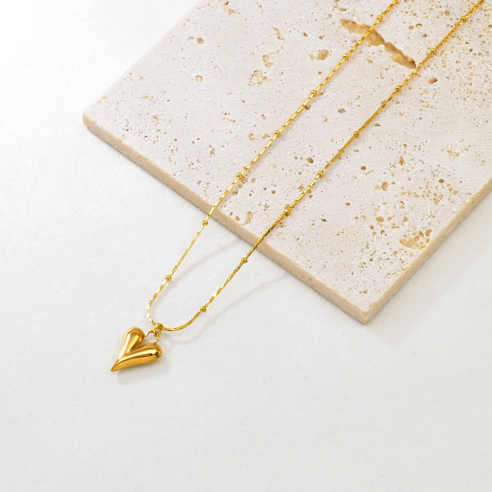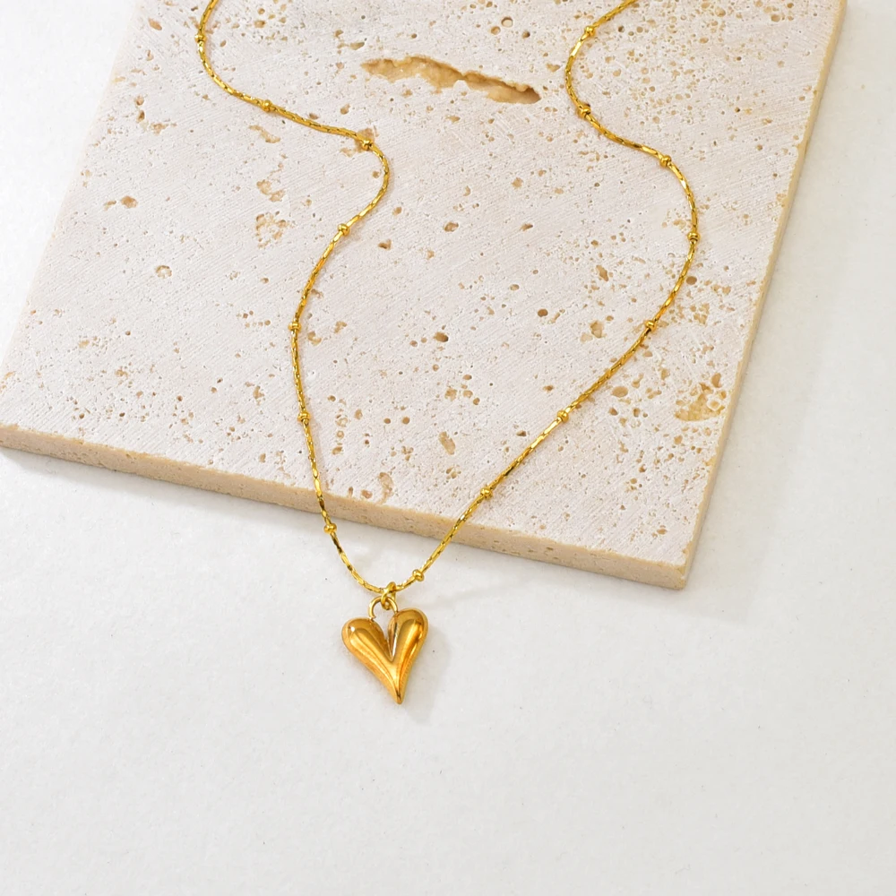 L255 Short heart-shaped three-dimensional beaded necklace, snake bone chain, collarbone chain, stainless steel jewelry
