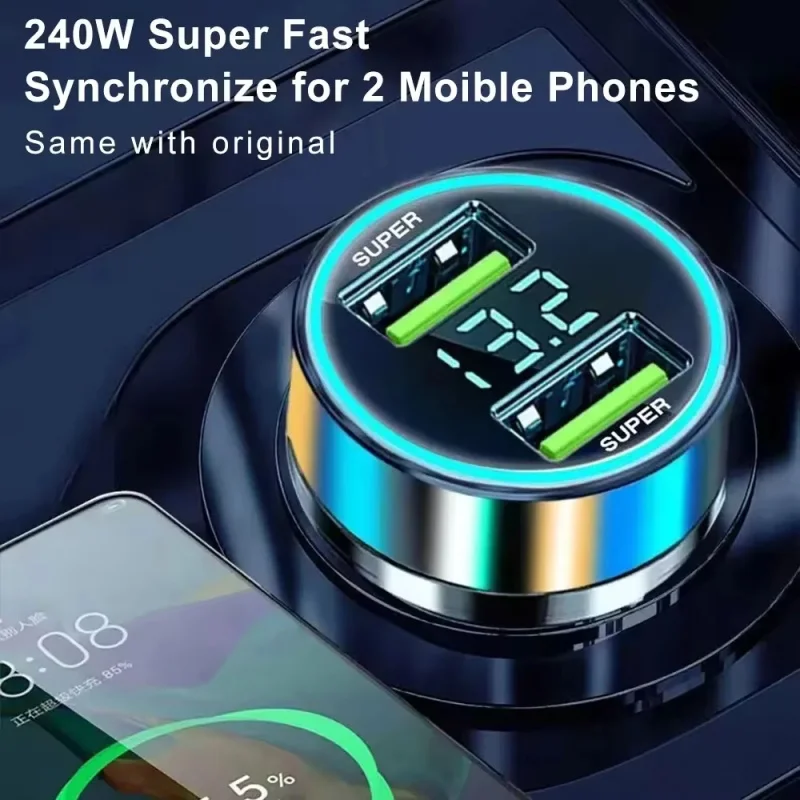240W Car Charger Fast Charging 2 USB Ports Adapter For IPhone Samsung Xiaomi Quick Charging Chargers With Digital Display