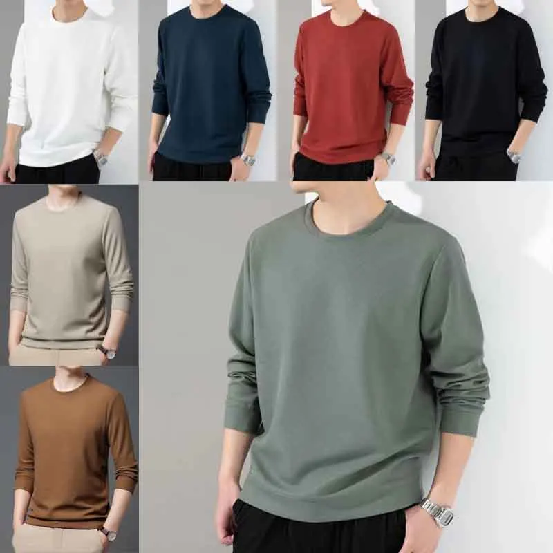 Spring Autumn Waffle t-Shirts For Men Long Sleeve t-Shirt Tops Fashion Soild Tee Shirts Casual Round Neck t Shirt Man Clothes
