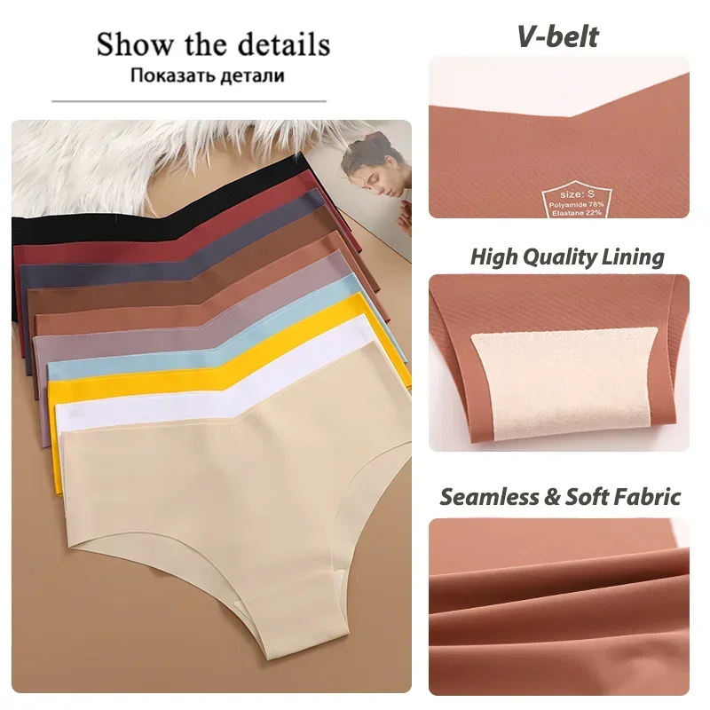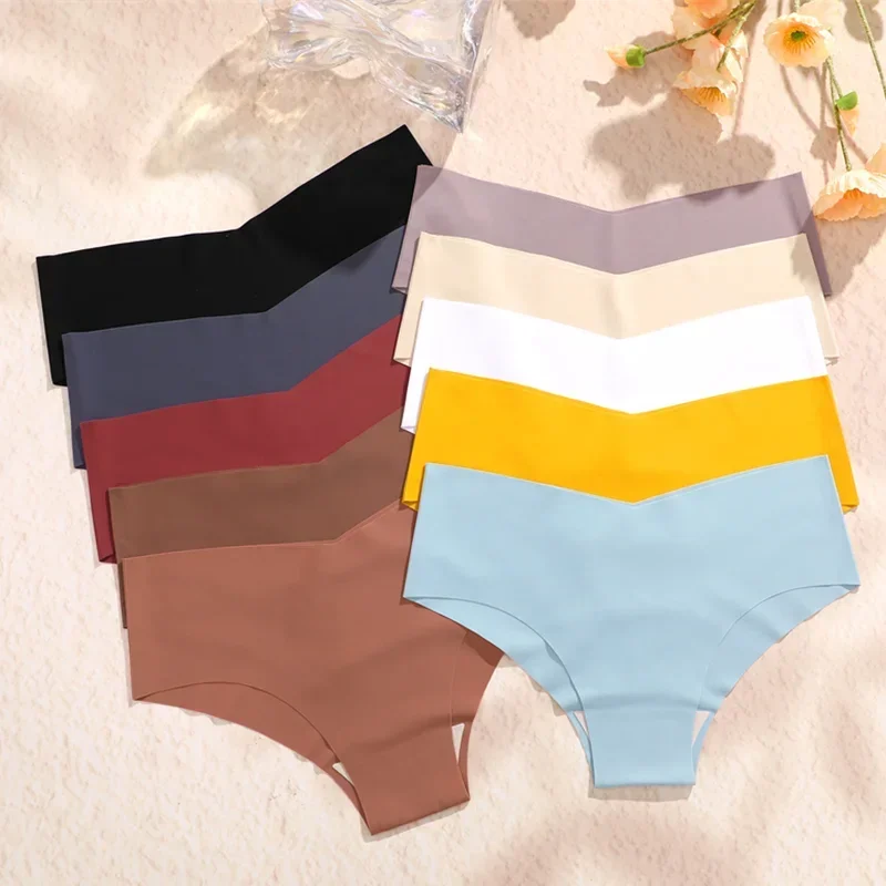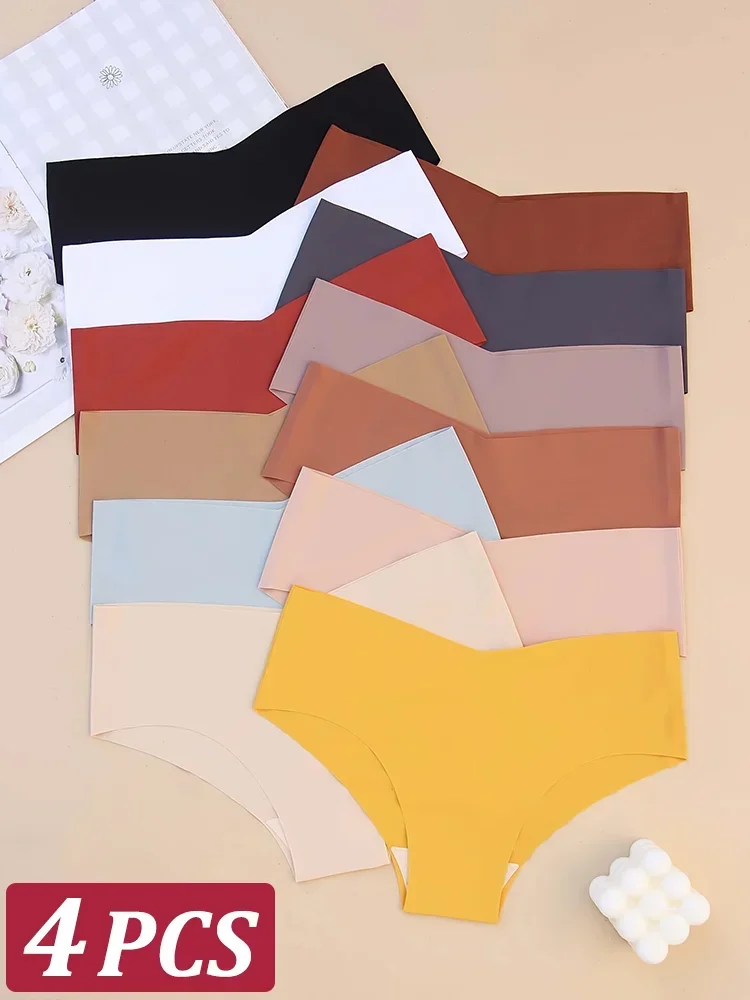4Pcs Seamless Panties For Women Silky Maillard Low Waist V-Waist Briefs Cotton Crotch Breathable Underwear Quick-Drying Underwea