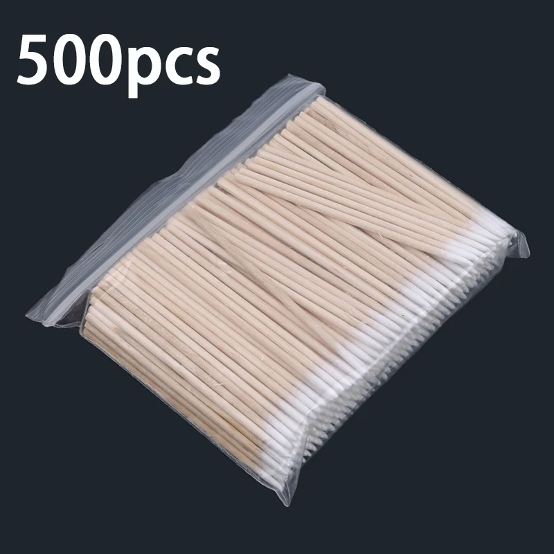 300/500pcs Wooden Tip Cotton Stick Long 7cm 300 Wooden Handle Tip Semi Permanent Embroidered Cotton Swabs