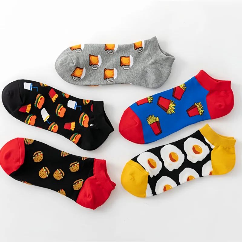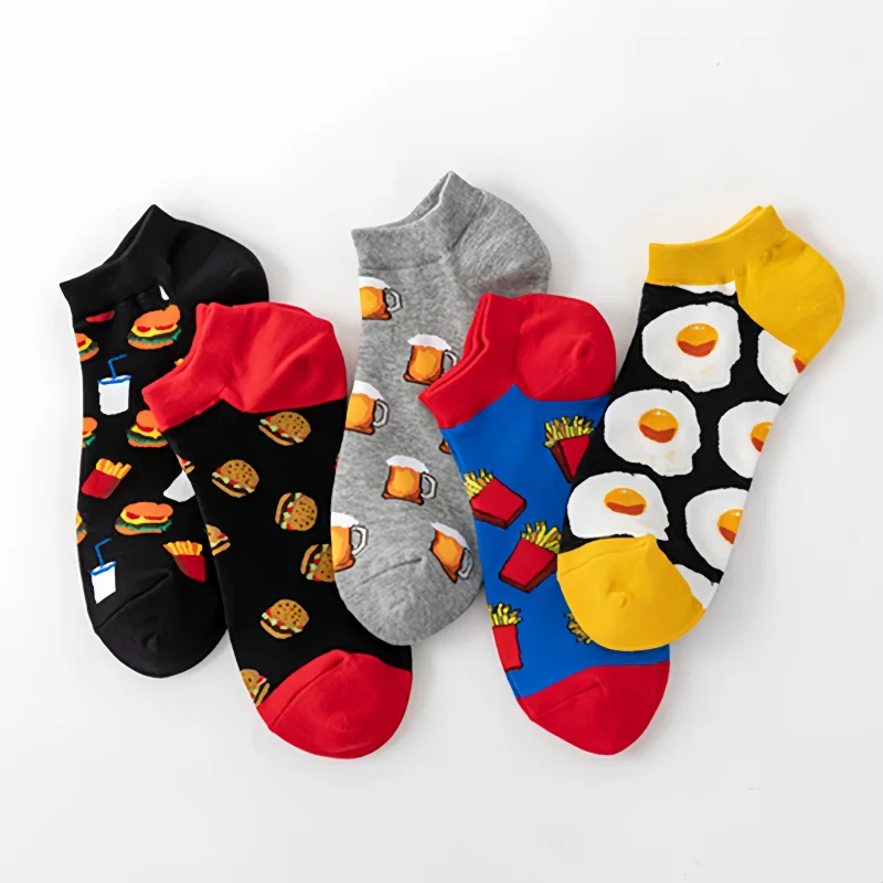 1/5 Paris Fruit Print No Show Socks Men Women Summer Anti-Slip Invisible Socks Damen Herren Calcetines Sokken Comfort Ankle