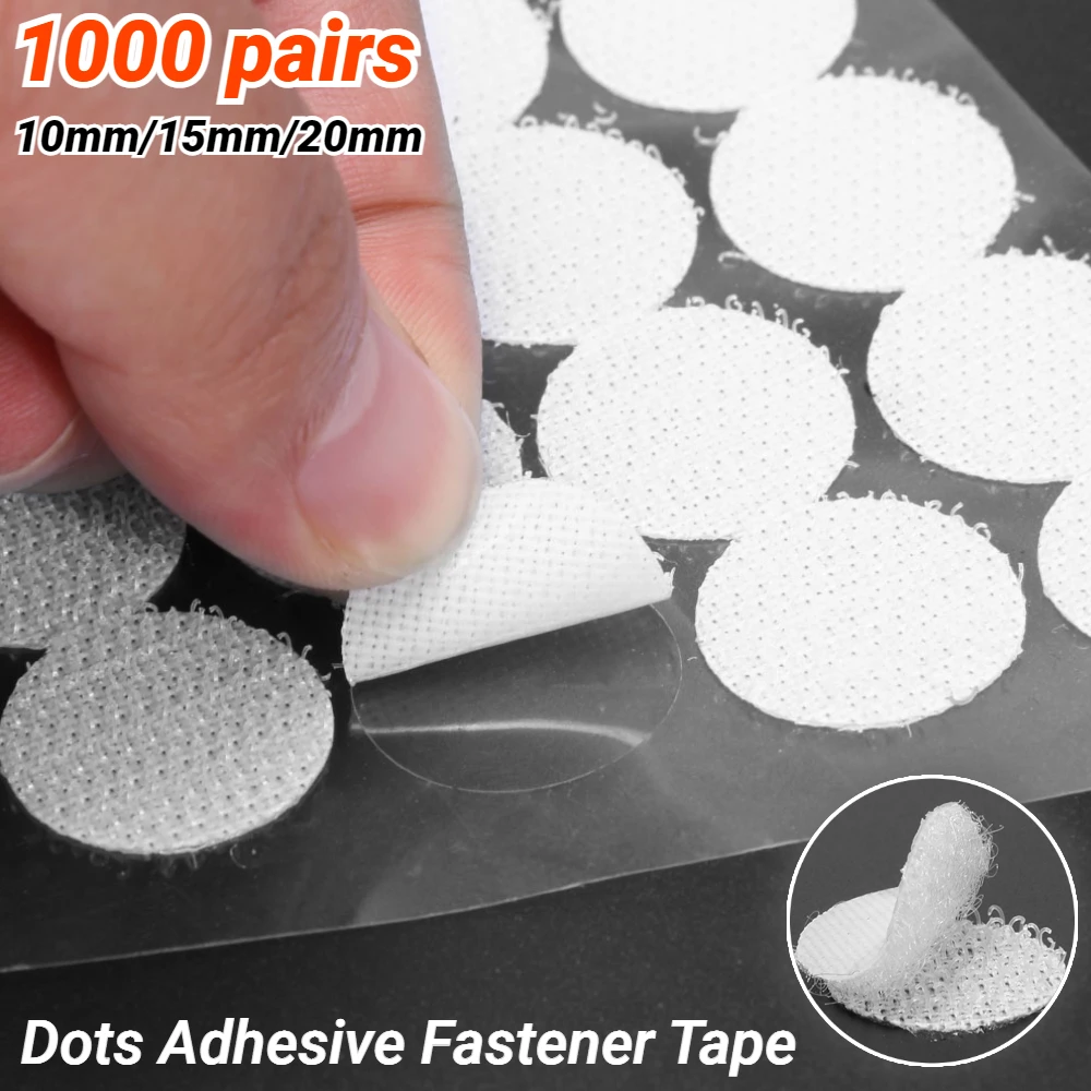 1000 Pairs Self Adhesive Fastener Tape 10/15/20mm Dots Adhesive Fastener Tape Strong Glue Sticker Round Fastener Hook Tape