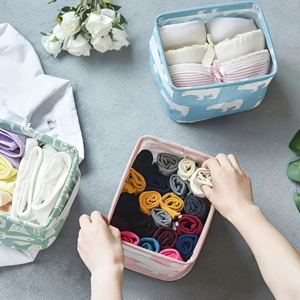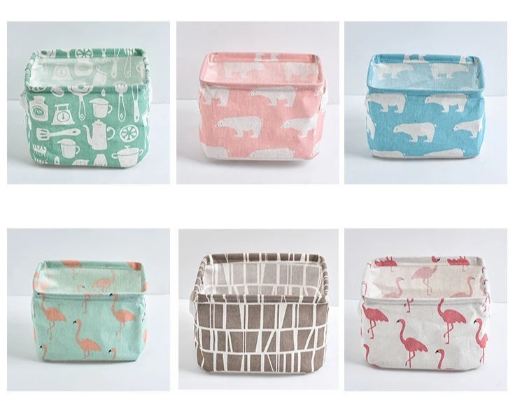 1pc Cotton Linen Fabric Waterproof Desktop Sundries Basket Storage Box Cosmetic Toy Organizer Underwear Socks Clothes Storagebag