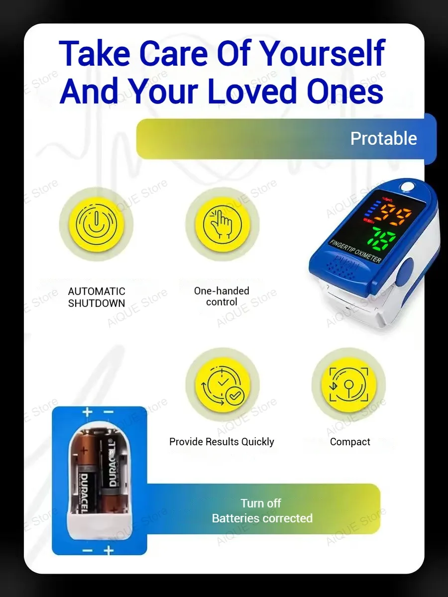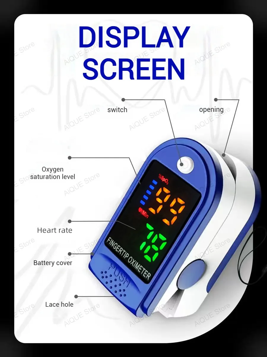 AiQUE Oximetry SpO2 PR LED Fingertip Oximeter Heart Rate Monitor Finger Clip Blood Oxygen Saturation Pulse Monitor Pulsometer