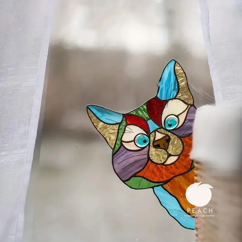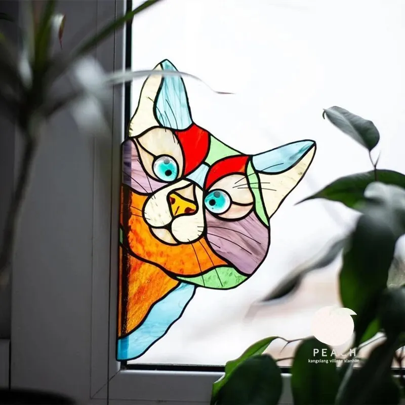 Cat Peeping Glass Window Self-adhesive Stickers, Waterproof Moisture-proof Glass Film, Bedroom Living Room Car Window Decoration