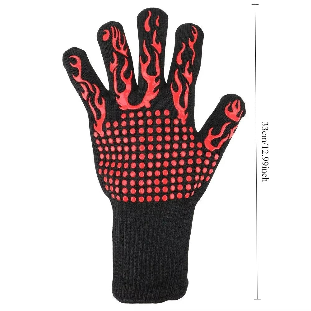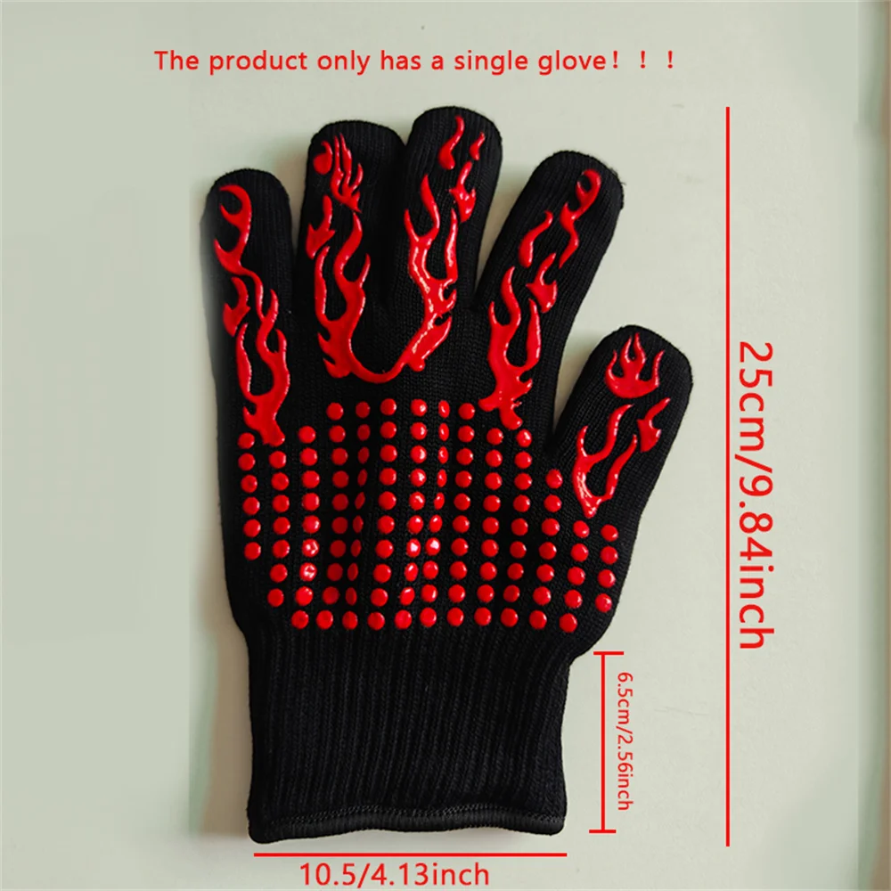 1pc Flame Retardant Non-slip BBQ Fire Glove Microwave Oven Gloves Oven Mitts Fireproof 300-500 Centigrade Extreme Heat Resistant