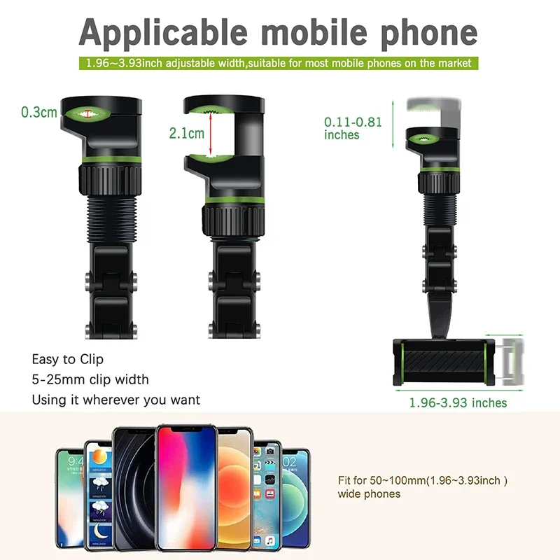 360° Rotatable Extendable Car Phone Holder - Rearview Mirror Mount, Adjustable Length, Multifunctional