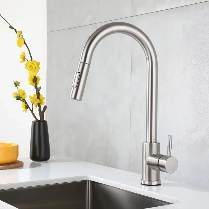 Kitchen Faucet Stainless Steel Brushed Faucet Kitchen Sink Faucet Pull-out Kitchen Water Faucet Single Hole Faucet