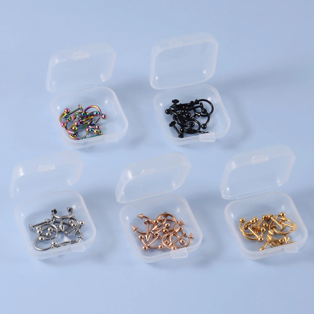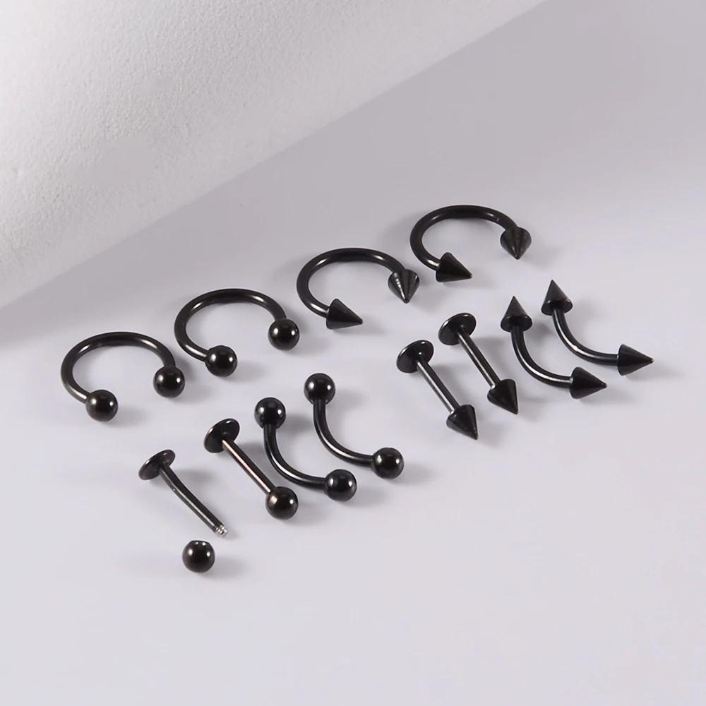 12pcs/Set Surgical Steel Silver Color Gold Plated Black Rainbow Ear Nose Eyebrow Labret Basic Piercing Jewelry Set 8mm