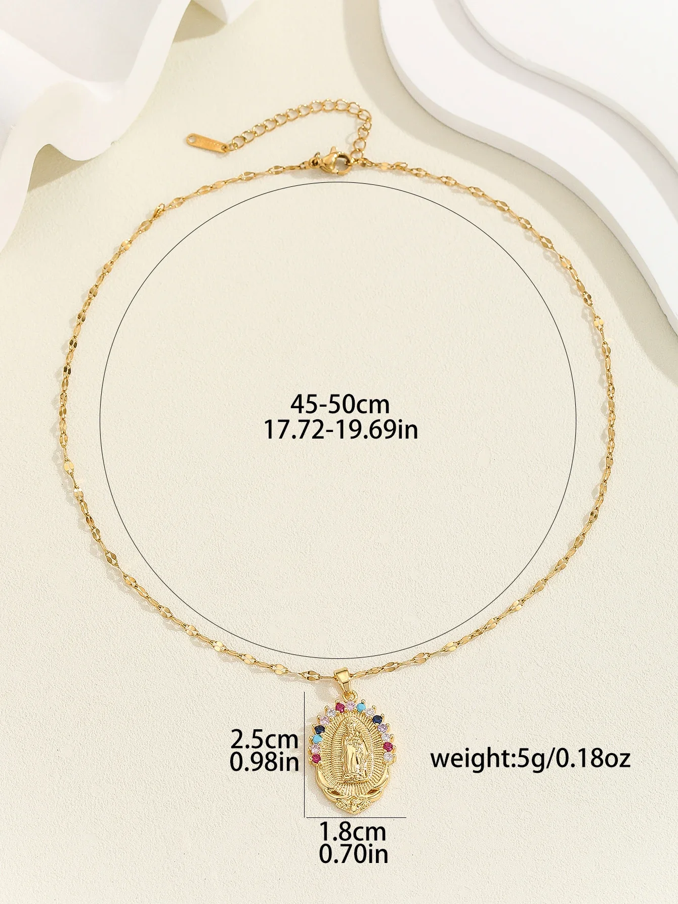 Luxury Gold Plated Multicolor CZ Pendant Necklace, Elegant Vintage Charm Jewelry Gift for Women