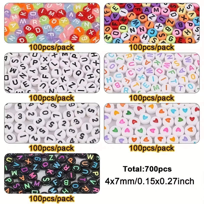 700pcs 7 Colors Round Letter Beads Acrylic Alphabet Number Beads for Jewelry Making DIY Taylor Friendship Bracelet (7x4mm)