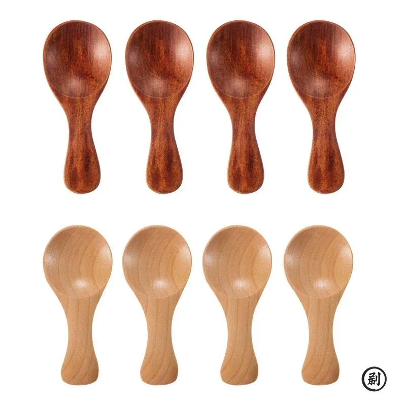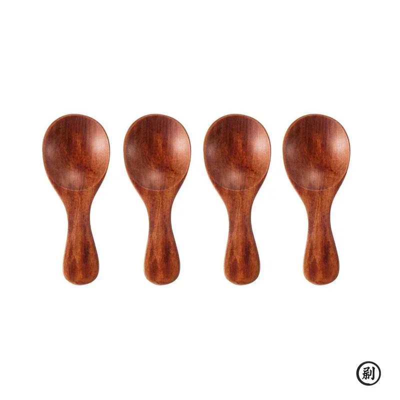 4Pcs Mini Wooden Spoons Small Kitchen Spice Condiment Spoon Sugar Tea Coffee Scoop Short Handle Wood Kids Spoon Kitchen Gadgets