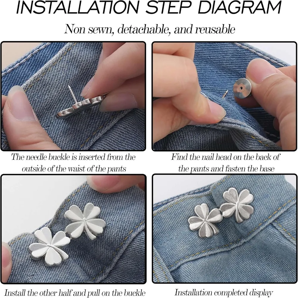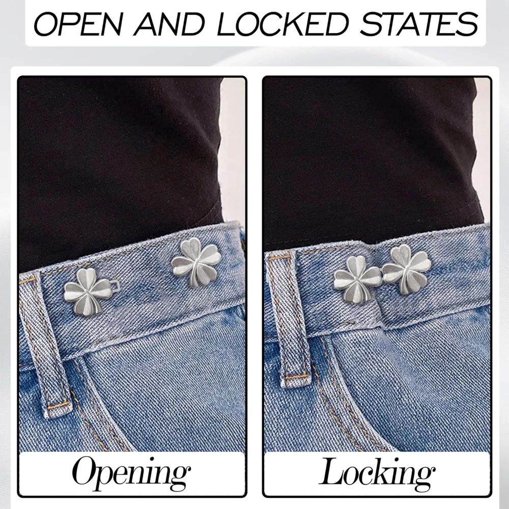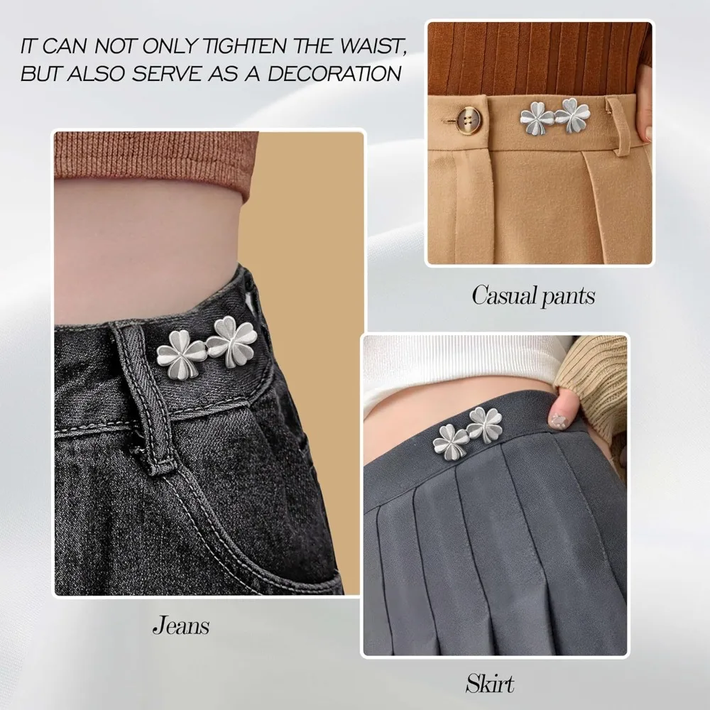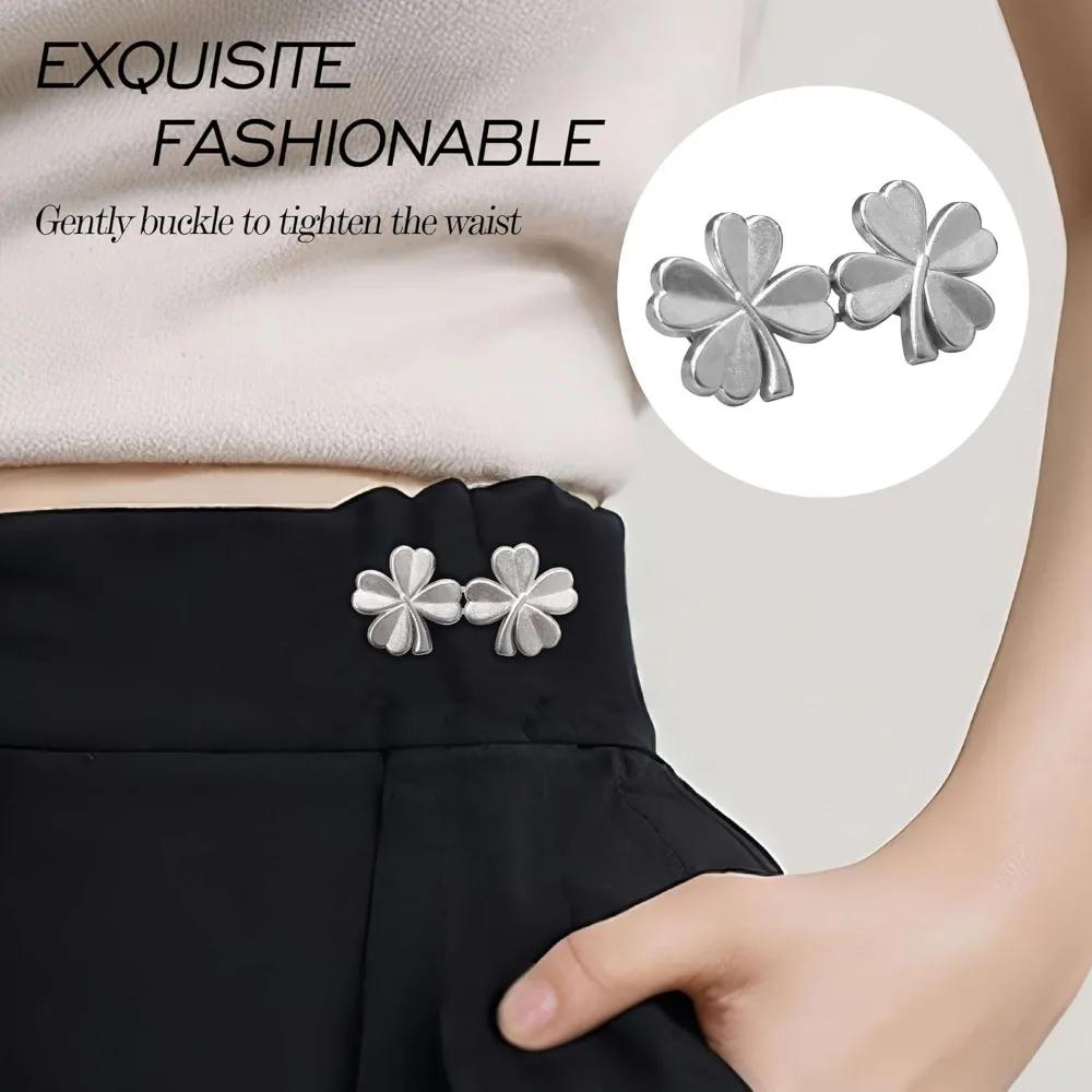 1Pair Four Leaf Clover Tightener Adjustable Waist Buckle For Jeans No Sewing Required Button Removable Pants Skirts