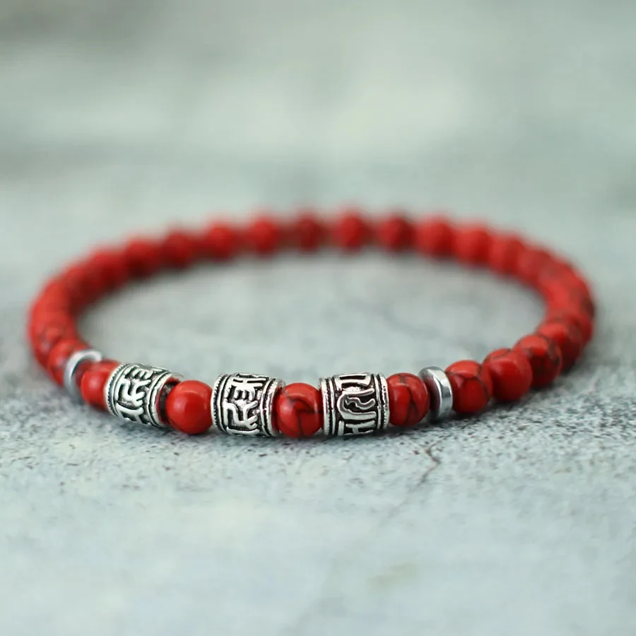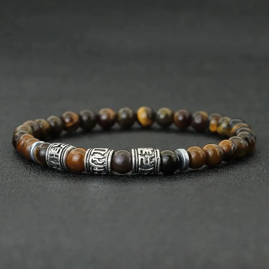 Noter Mantra Bracelet For Men 6mm Howlite Lava Tiger Eyes Beads Braslet Viking Accessories Pulseras Para Hombre Tibet Braclet