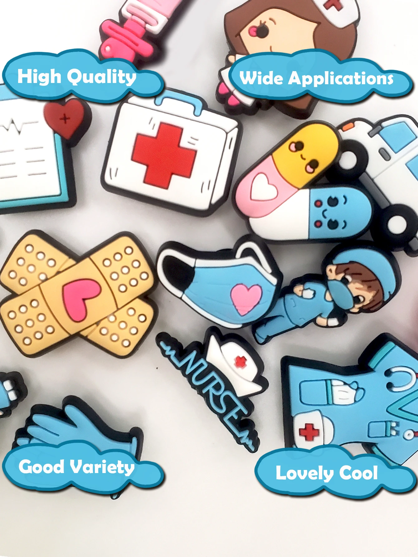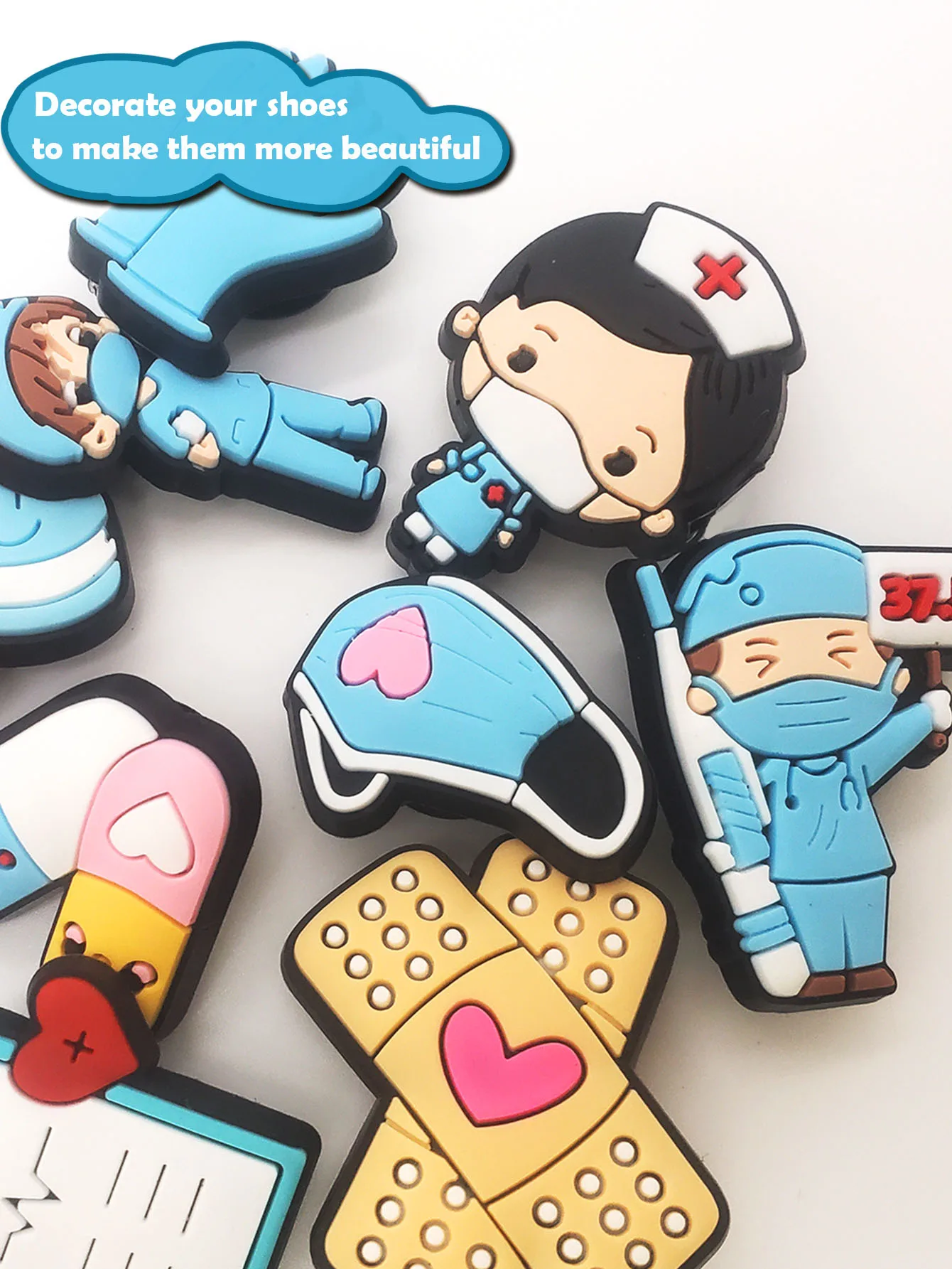 Random 10-50Pcs Doctor Series Shoe Charms DIY Shoe Decoration Accessories Premium Quality Popular Charms Bubble Slides Sandals