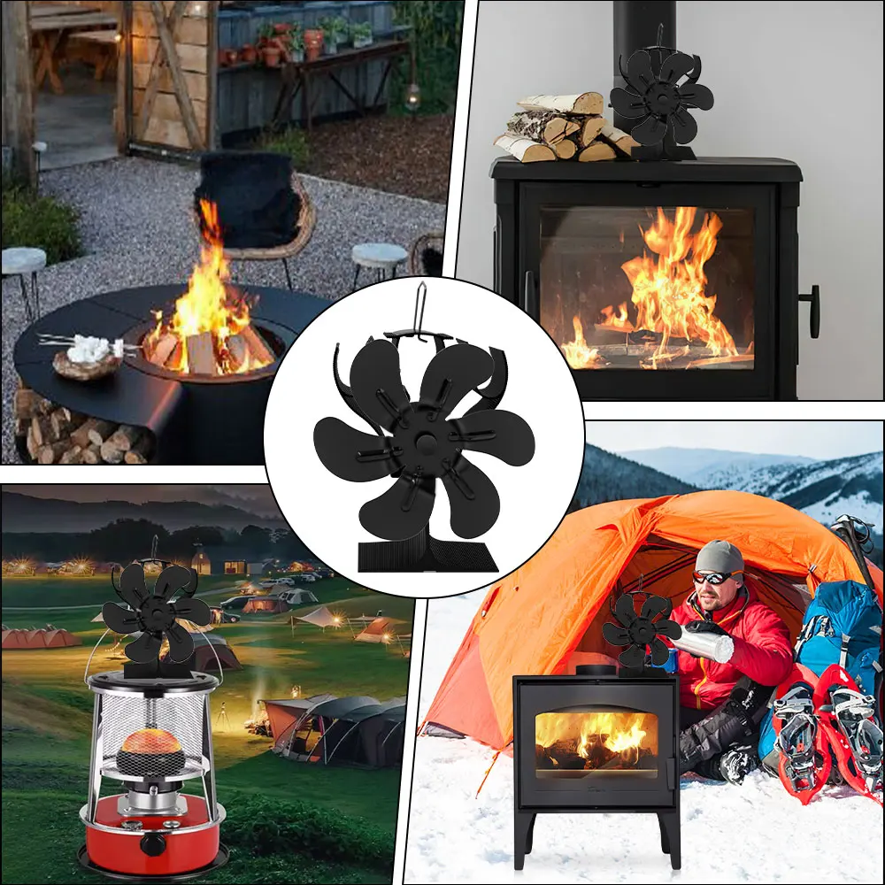 6-Blade Heat Powered Stove Fan for Wood Log Burner Fireplace Quiet Environmental Fan Heater Tool Efficient Heat Distribution