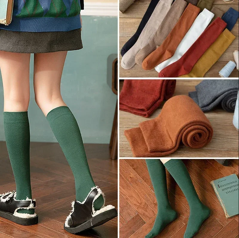 Harajuku Long Socks Women Stockings Organic Cotton Solid Warm Thigh High Ladies Girls Street Fashion Young Casual Knee Socks