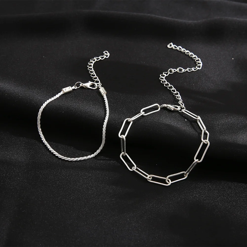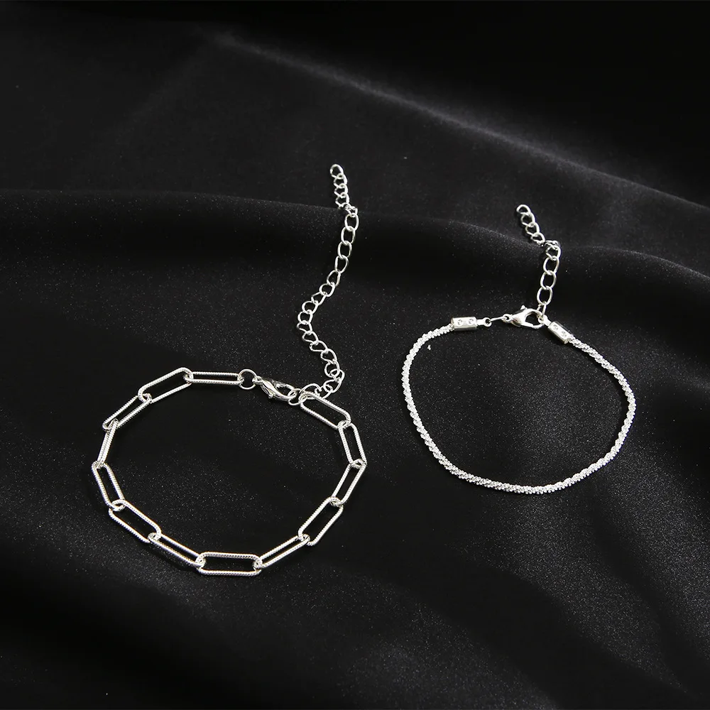 2Pcs Korean Sparkling Bracelet Set For Women Silver Color Cross Charm Chain Bangle Wristband Female Fashion Party Jewelry