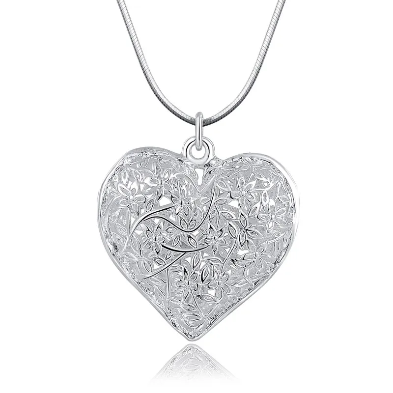 925 Sterling Silver 18-30 Inch Carved Heart Pendant Snake Chain Necklace For Women Fashion Wedding Party Charm Jewelry