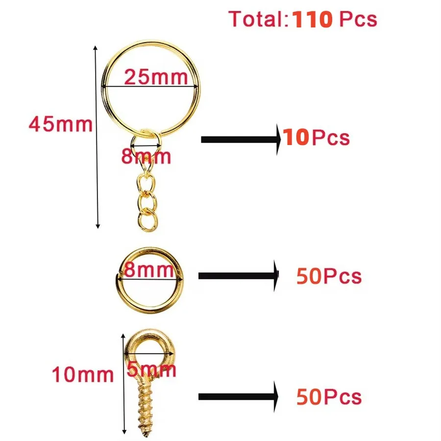 110Pcs/Set Keychain Open Jump Rings Eye Pins Jewelry Making Accessories Kits for DIY Key Chain Key Ring Pendants
