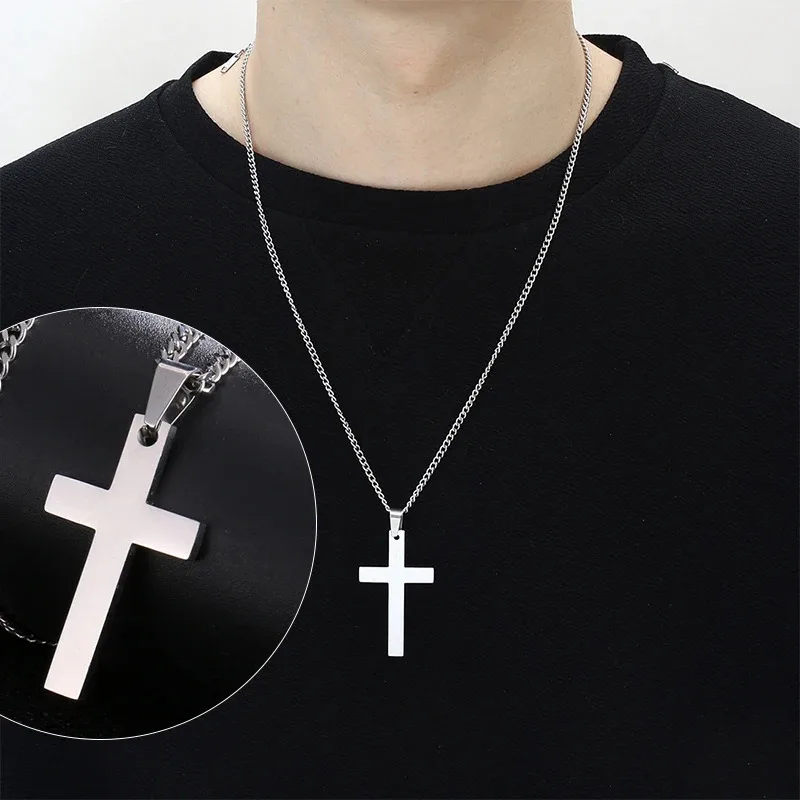 Trendy Stainless Steel Cross Pendant Necklace, Uni Link Chain Design, Cool Punk Hip Hop Jewelry Gift for Boys and Girls.
