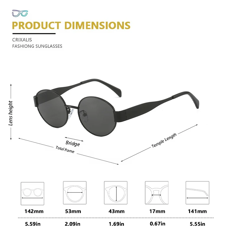 CRIXALIS Vintage Oval Sunglasses for Women 2025 Fashion Luxury Designe Sun Glasses Ladies Small Retro Alloy Shades Ladies UV400