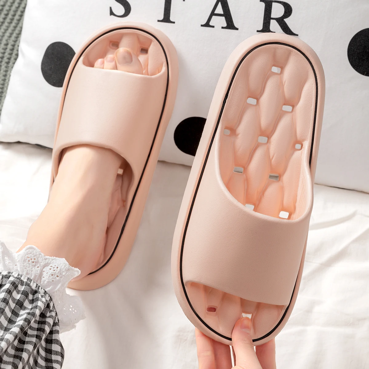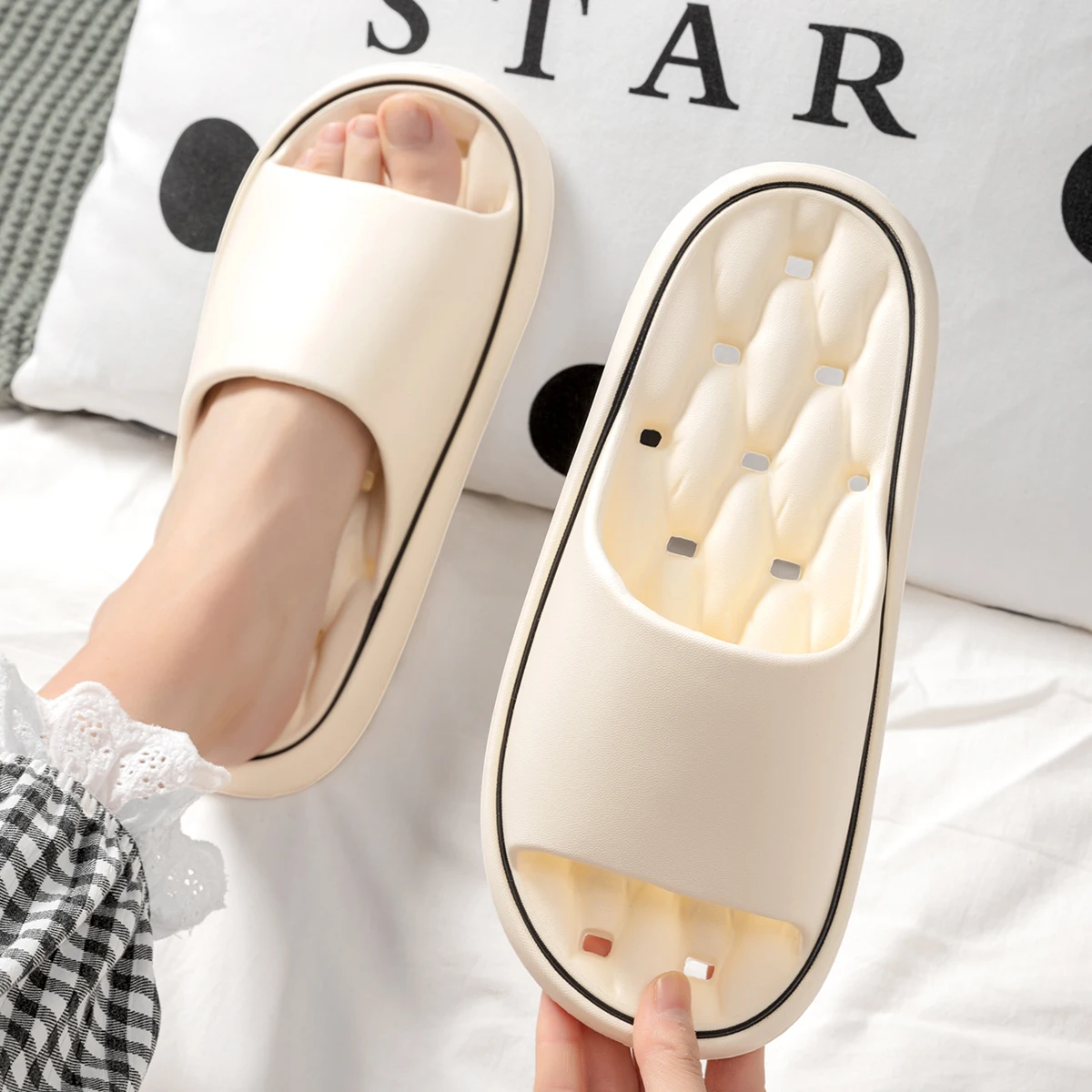 Summer Women Bathroom Slippers EVA Leaky Home Sandals Comfortable Soft Non-slip Slides Indoor Men Quick Drying Flip Flops