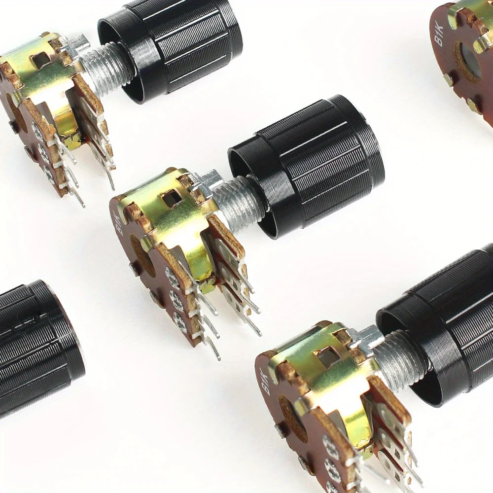 5Set WH148 Linear Potentiometer Kit-15mm 6pin 1K 2K 5K 10K 20K 50K 100K 250K 1M Aluminum Alloy Knob Cap-for Precision Adjustmen