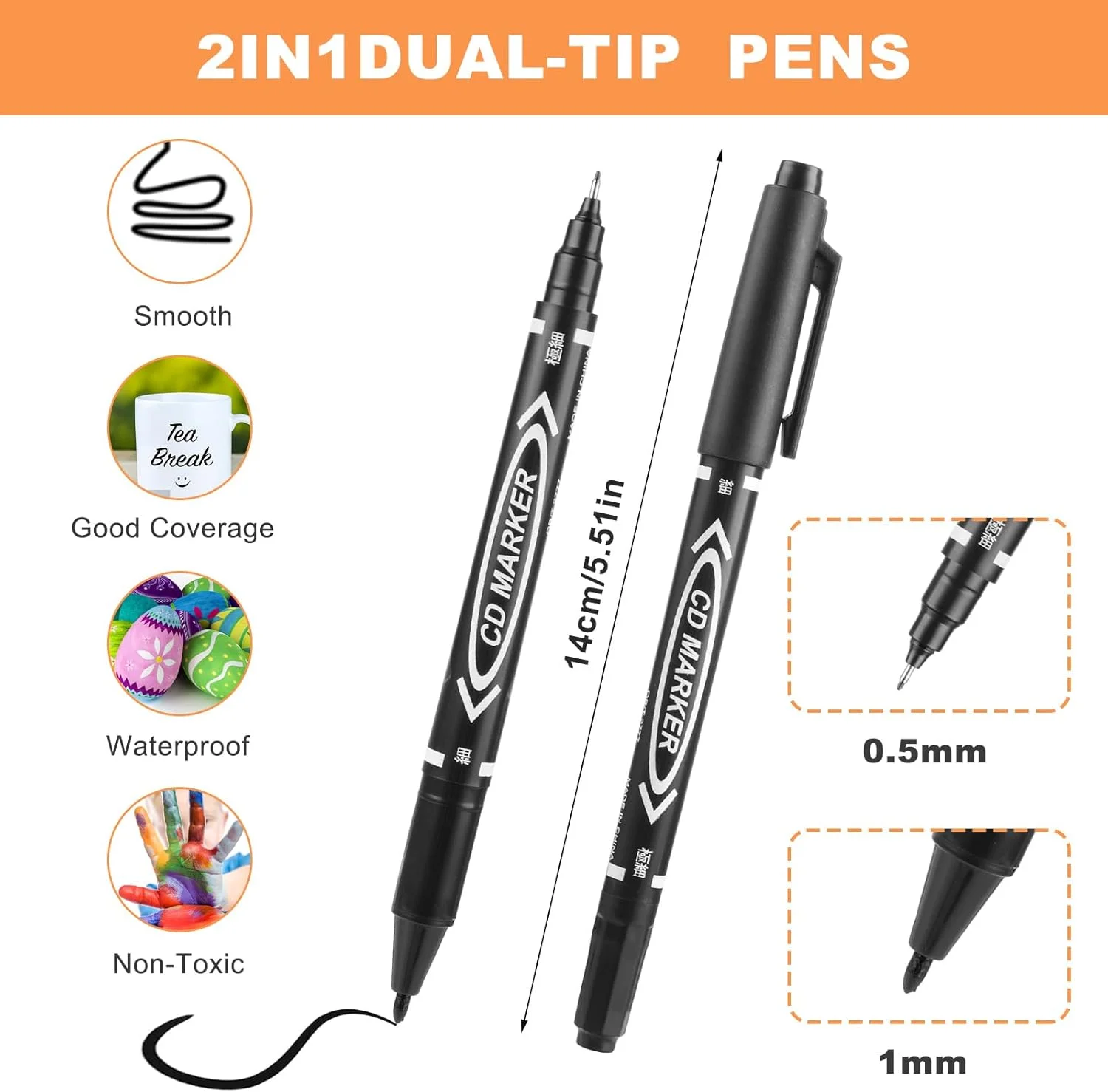 10-Piece Double-Ended Brush-Tip Marker Set Black/Red/Blue Drawing Set Ideal for Painting, Sketching, Writing, and Doodling