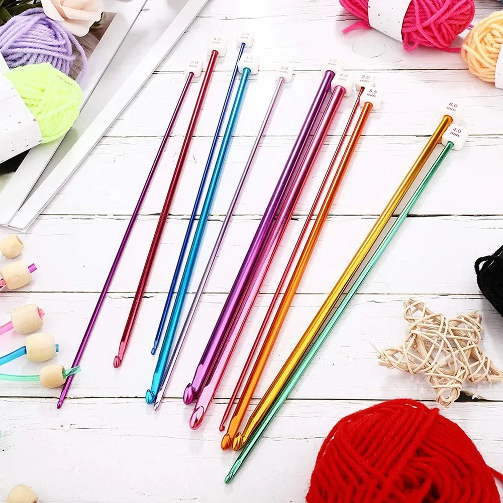 11 Size Tunisian Afghan Crochet Hooks Knit Needles Multicolor Aluminum Knitting Needles Crochet Hook Sets 2-8 mm