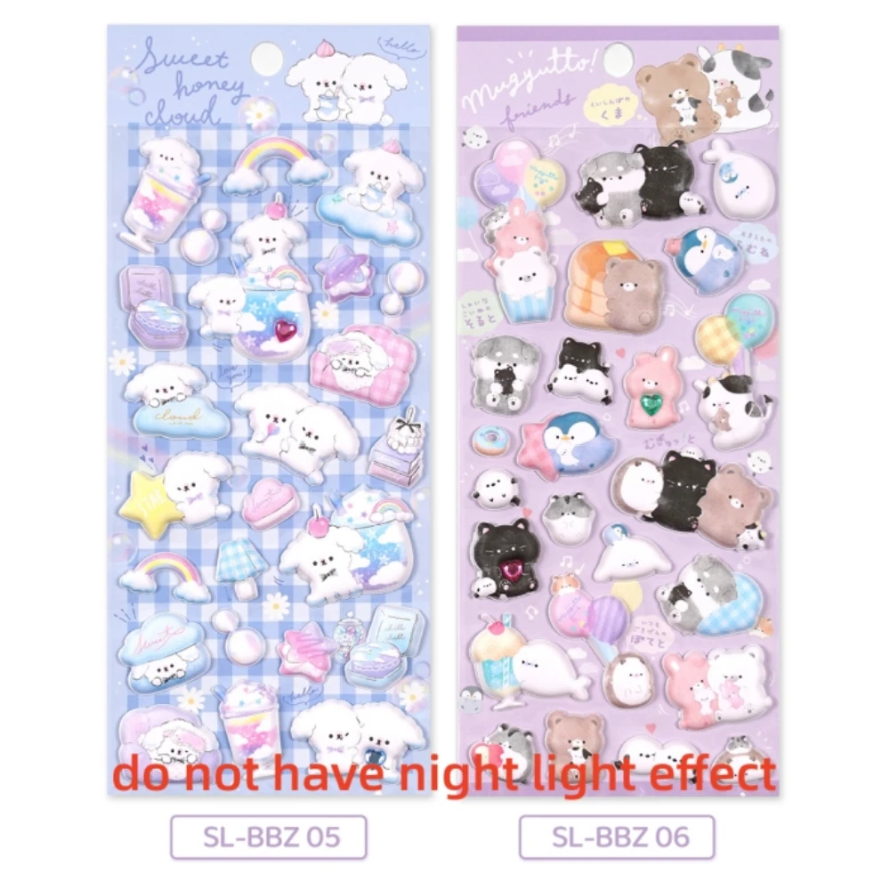 3pcs Kawaii Sushi Animals Noctilucent Puffy 3D Stickers Scrapbooking Diy Journal Cute Stationery Diary Sticker Ablum Prizes Gift