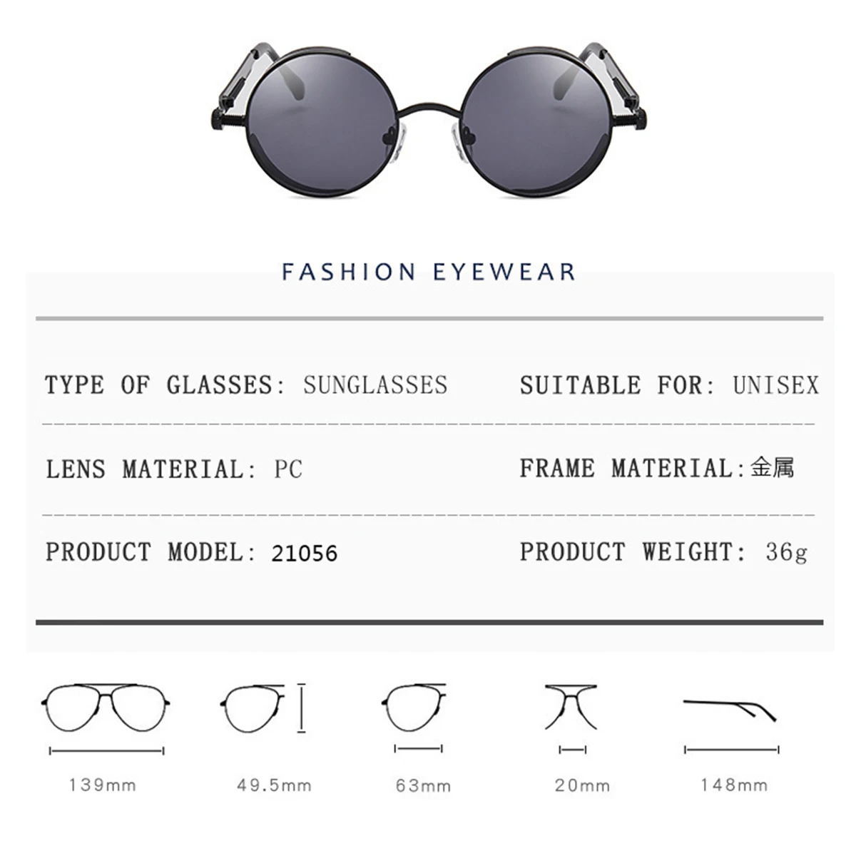 Retro Punk Sunglasses round Reflective Glasses Sunglasses for Men and Women
