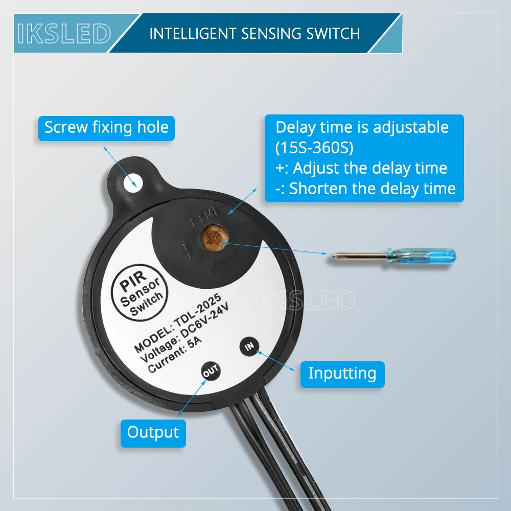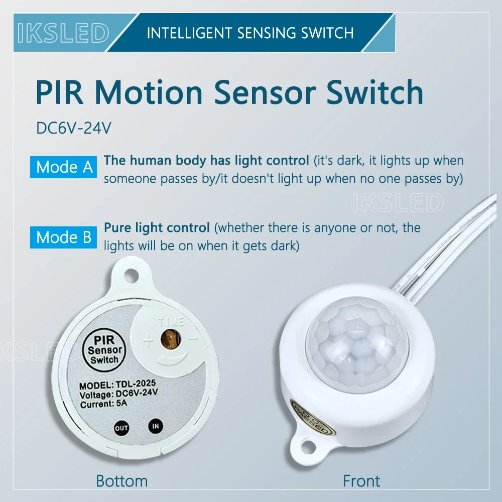 PIR Motion Sensor Switch,DC6V-24V2A PIR Infrared Motion Human Body Sensor Detector Switch,Light Sensor Adjustable for LED Strip