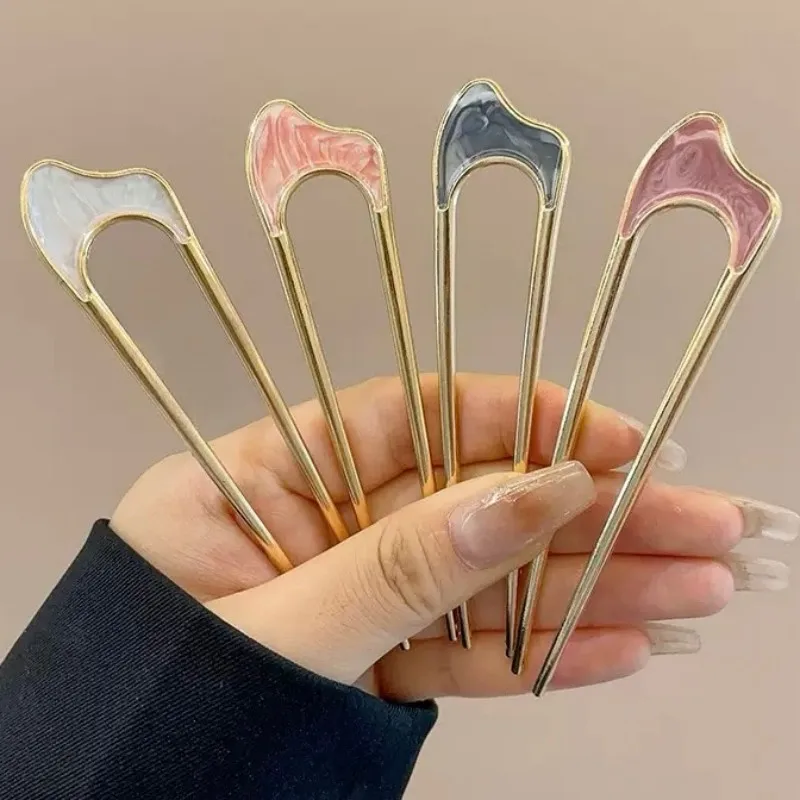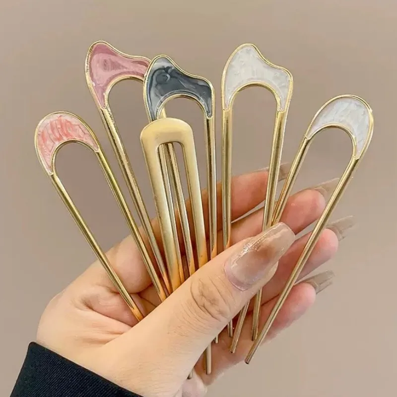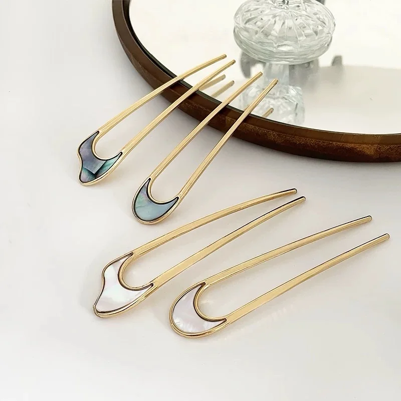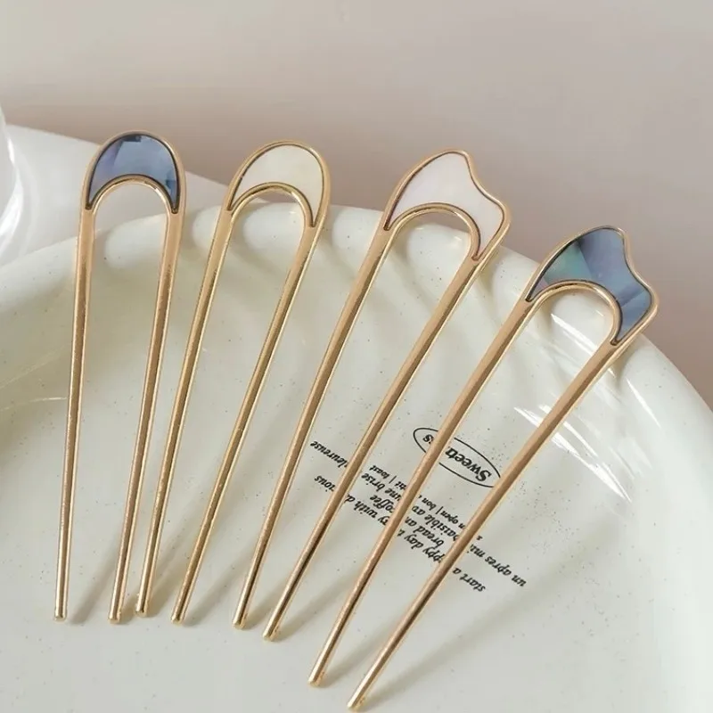 Metal U-Shaped Hairpin For Women - With Shell Top, Simple Retro Design