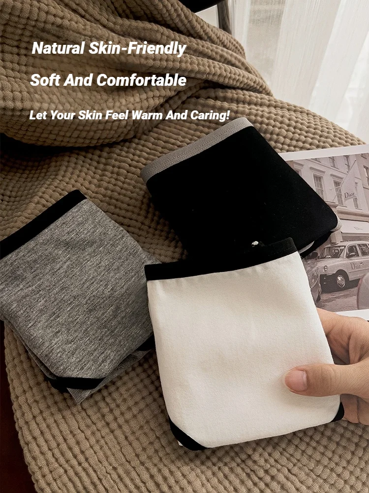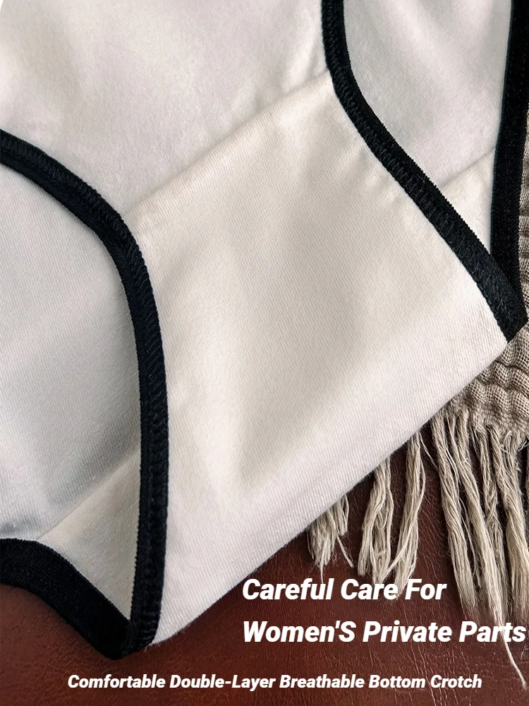 Wo3Pcs Cotton Women'S Panties Triangle Sports Style Minimalist Girls' Underwear Mid Waist Japanese White Black Women 3Pcs
