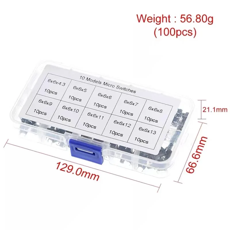 10 types of 100/200 micro switch buttons 6*6 vertical panel switch buttons Repair switch buttons
