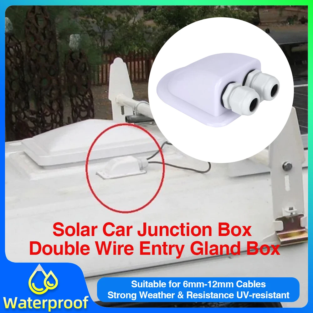 Caravan Junction Box Solar Waterproof Wire Entry Cable Storage Case Gland Box Roof Wire Entry Cable Connector Holder Dual Hole