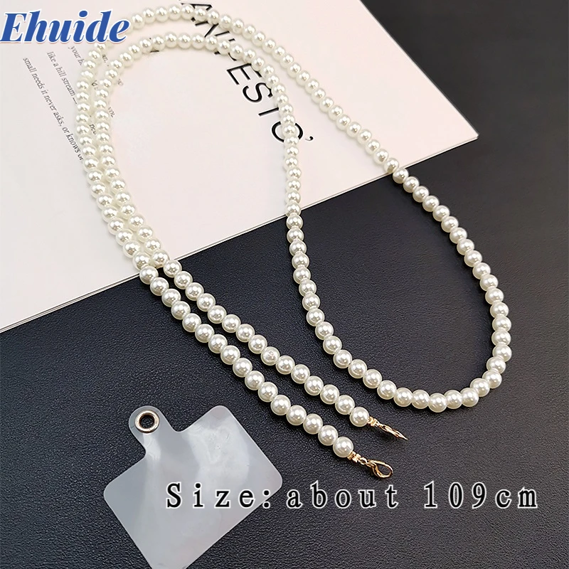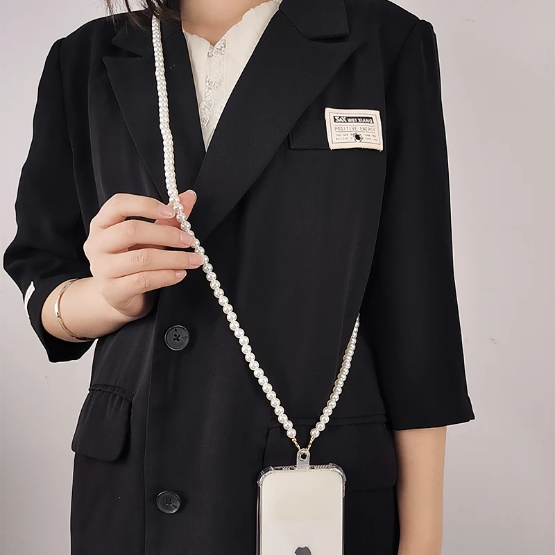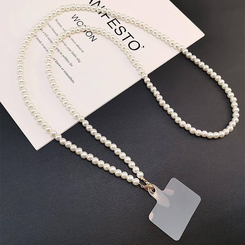 Phone Lanyard Long Crossbody Necklace Chain Hand-beaded Plastic Pearl Strap Anti-lost Sling Universal Clip Bag for Phone Case