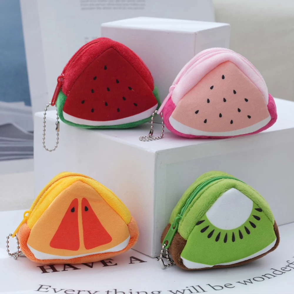 Cartoon Children's Plush Three-Dimensional Triangular Fruit Coin Bag Key Bag Pendant Organizer Bag