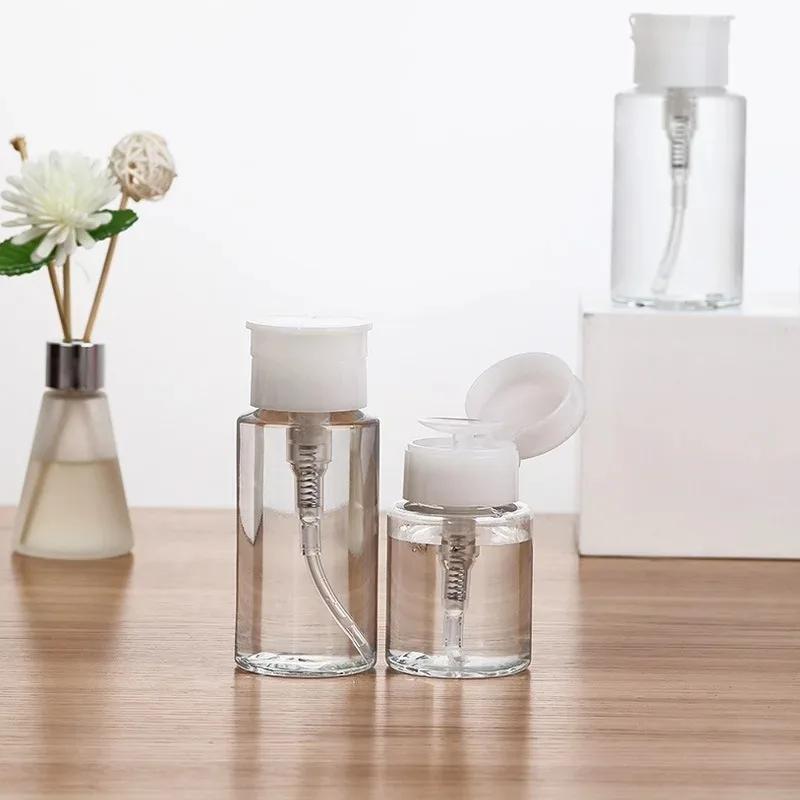 1pc Refillable Bottles Push-type Bottling Empty Pump Dispenser Bottle for Nail Polish and Makeup Remover Bottle Packaging