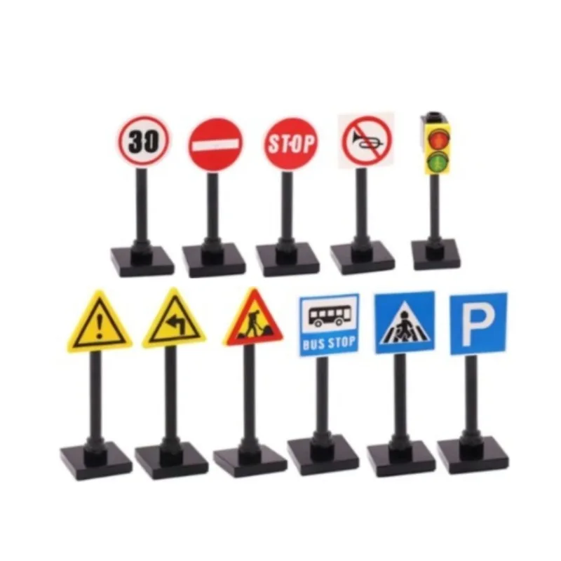 Urban Traffic Signs Street Speed Limit Warnings Assembly Parts MOC Street Lights Traffic Lights Building Blocks Educational Toys