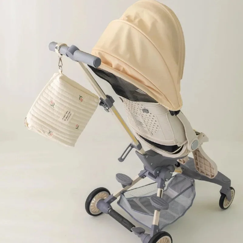 Cute printed embroidered mommy bag zipper single button newborn baby diaper storage bag travel cart storage bag