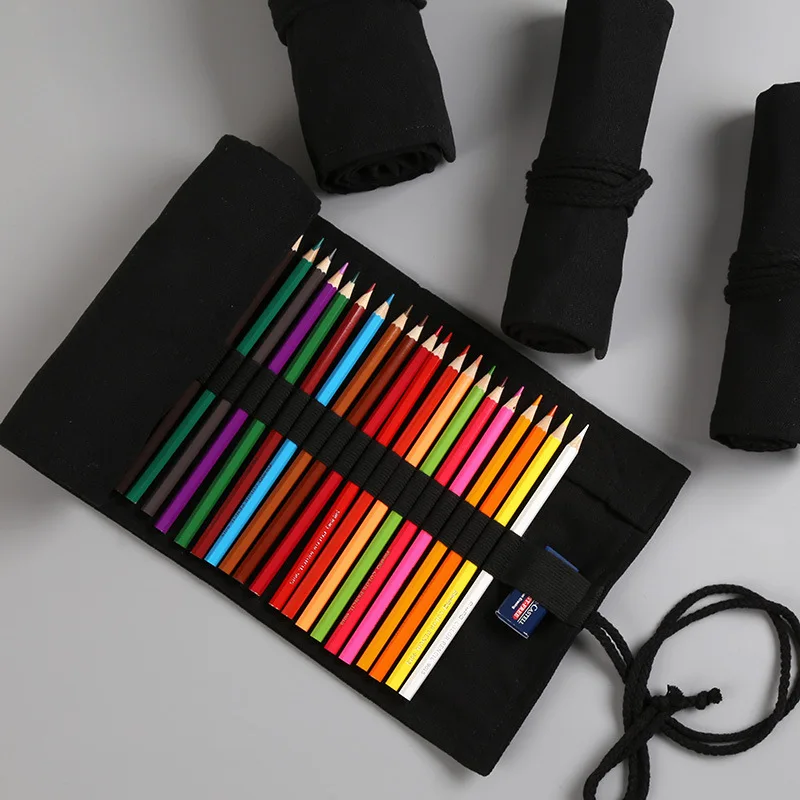 Borrence 24/36/48/72 Hole Roll Colored Art Pencil Case School Students Supplies Paint Brush Pen Bag Cute Pencil Cases Stationery