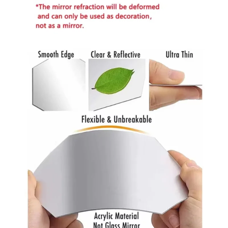45pcs Mirror Wall Sticker, Hexagon Wall Art Sticker, DIY Household Decorative Tiles Sticker