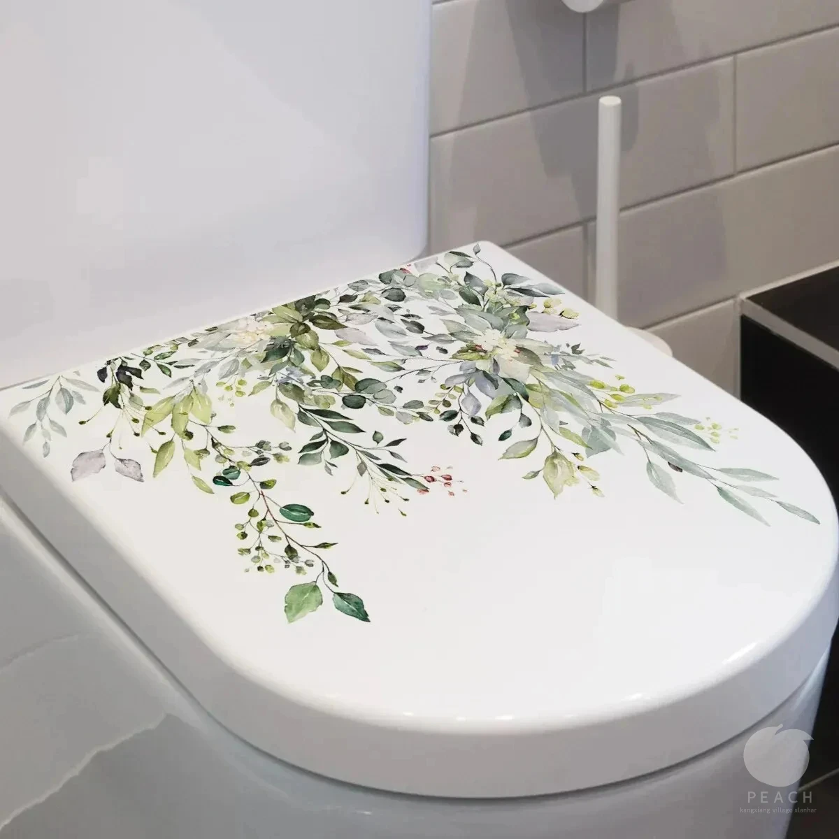 1PCS Green Plants Flowers Wall Sticker Bathroom Toilet Decor Decals Living Room Cabinet Home Decoration Self Adhesive Mural