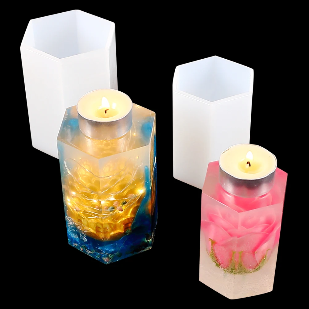 Cylinder Candles Mold Hexagon Silicone Epoxy Resin Mold for Candle Soap Aromatherapy Flower Specimen Crafts Making